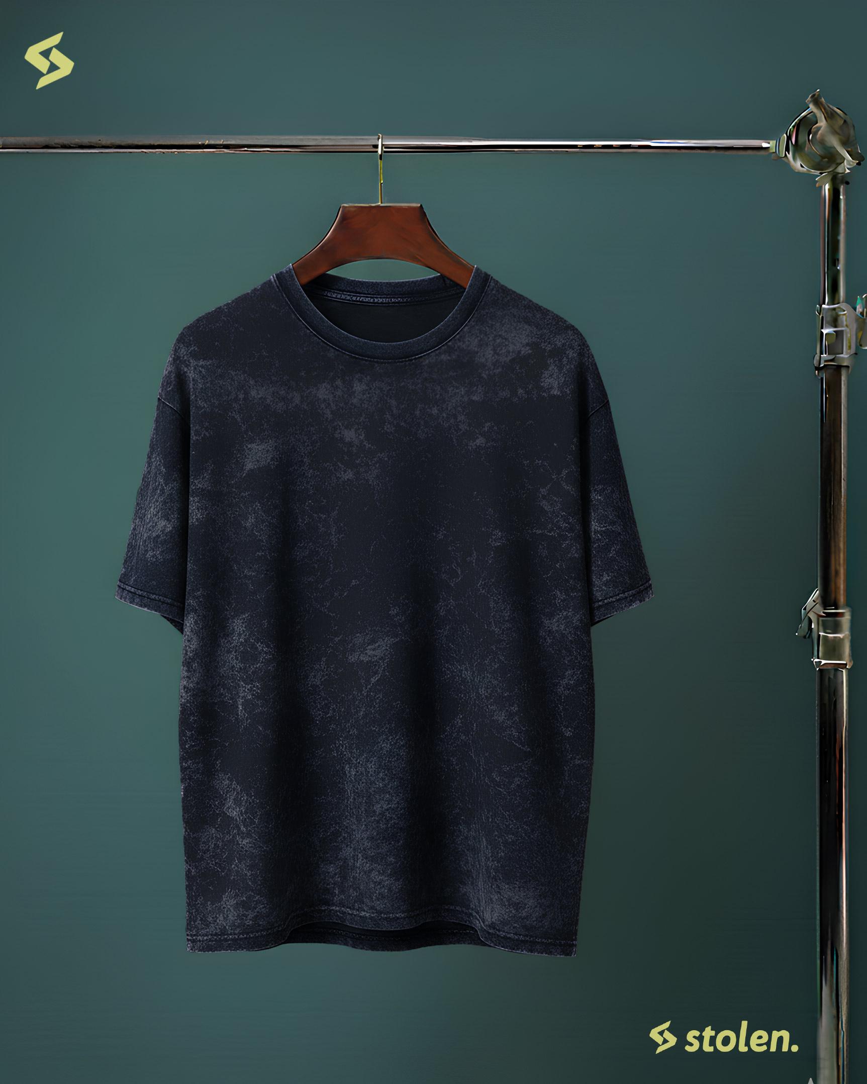 Unisex oversized tee in premium 200-220 GSM heavyweight cotton with rich navy blue acid wash finish and relaxed drop-shoulder cut for that deep, moody vintage streetwear style.