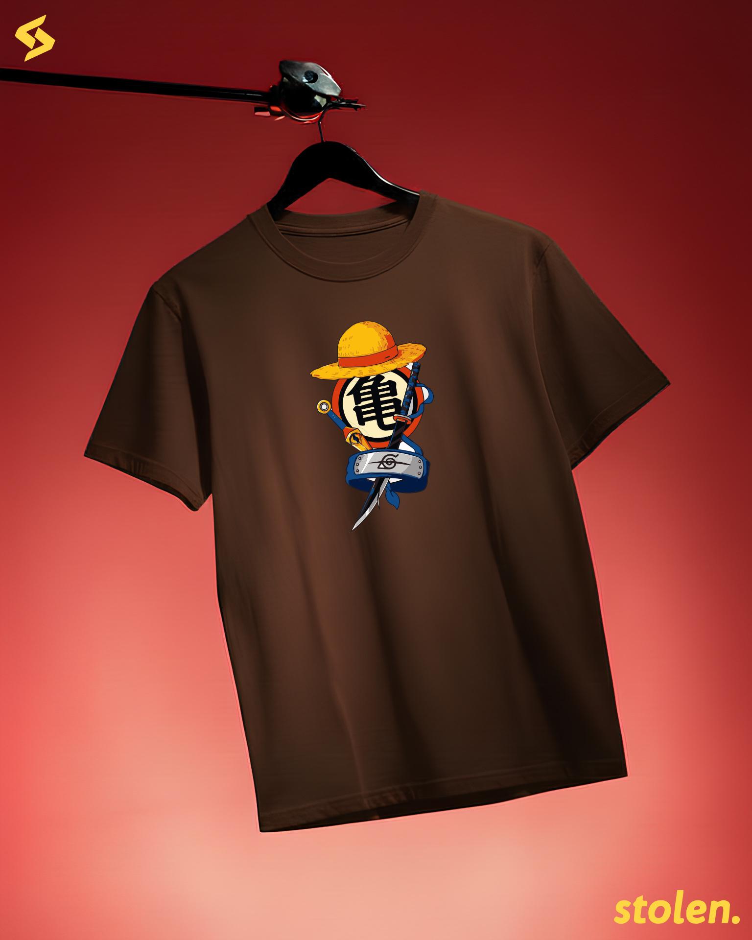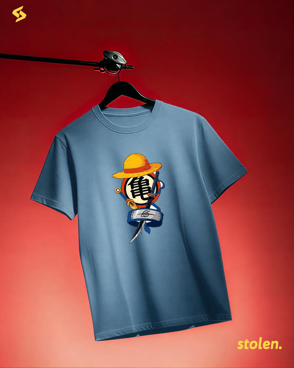 Unlock the ultimate crossover. This isn’t just a t-shirt; it’s a tribute to the legends that defined an era. Featuring the iconic symbols of the anime collection, this bundle design is the definitive "Big Three" (plus one) tribute for every hardcore fan.