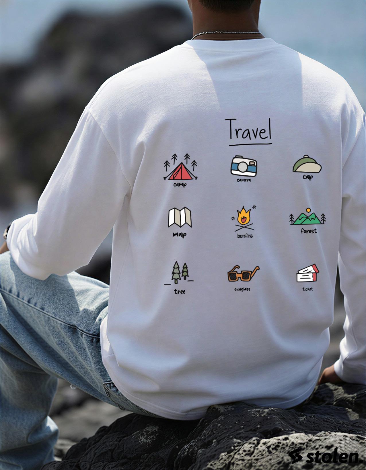 TRAVEL – Long Sleeve Travelling T-Shirt - Whitewhite long sleeve t-shirt made from 100% cotton with 200+ GSM fabric, featuring travel print for travellers.